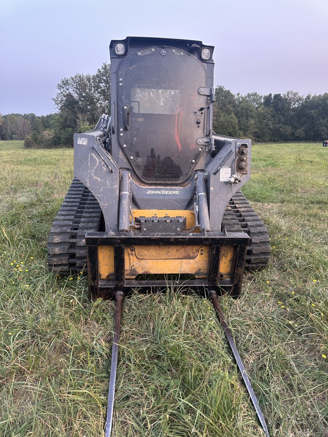 JOHN DEERE 325G COMPACT TRACK LOADER, 2023, 74hp, 4 cylinder, turbo diesel engine, 110V coolant heater, JDLink MTG, CAB, HVAC, standard flow hydraulics (18 gpm), 2 speed (8.2 mph), E/H switchable controls (ISO/H pattern), joystick performance package, keyless sealed switch module with programmable security codes,