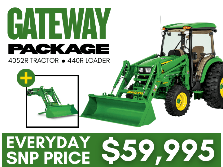 Discover unstoppable capability with the Gateway Compact Tractor Package, your all‑in‑one solution for property owners, acreage managers, and rural professionals who demand more from their equipment. This powerhouse package pairs the elite John Deere 4052R Cab Tractor with the rugged, highly capable 440R Loader—giving you the performance you need and the comfort you deserve.